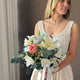 El Ramo Romina esta compuesto por tonos muy otoñales que brindan esa esencia calida de la naturaleza. ¡Es un Ramo que florecerá para siempre y se verá como el día de la boda! diámetro 32cm altura 50cm Forma del Ramo Redonda despeinada
